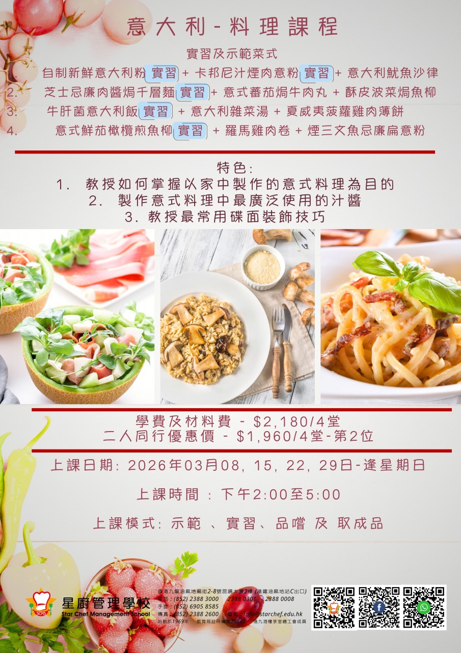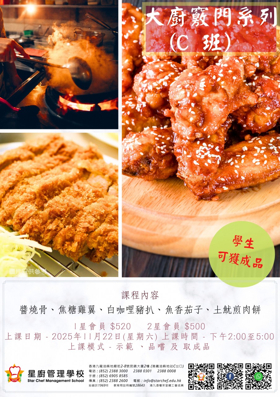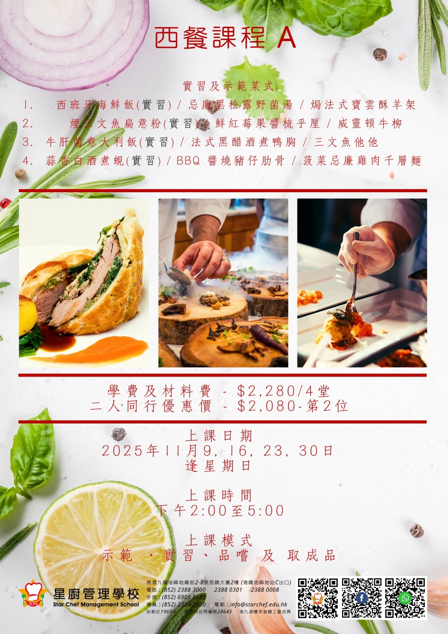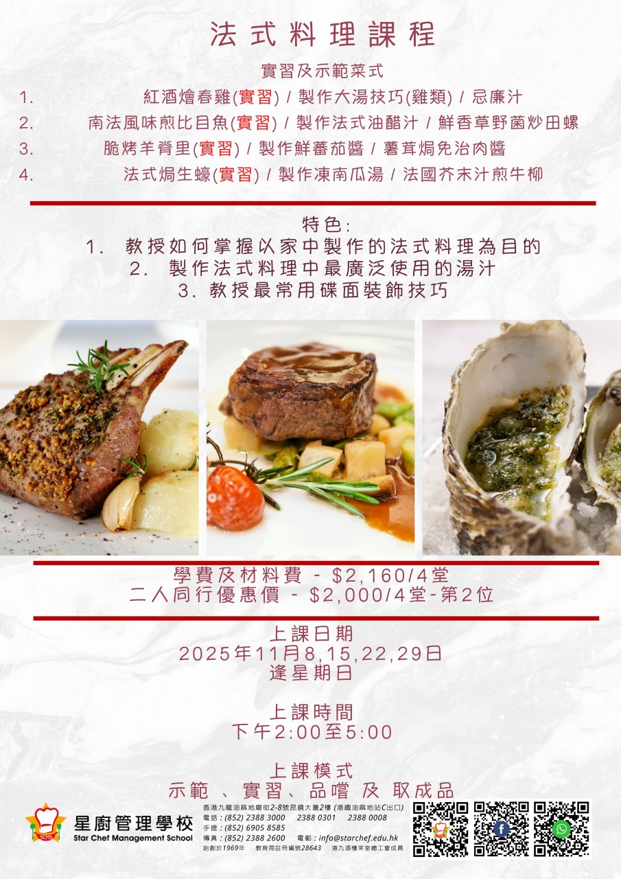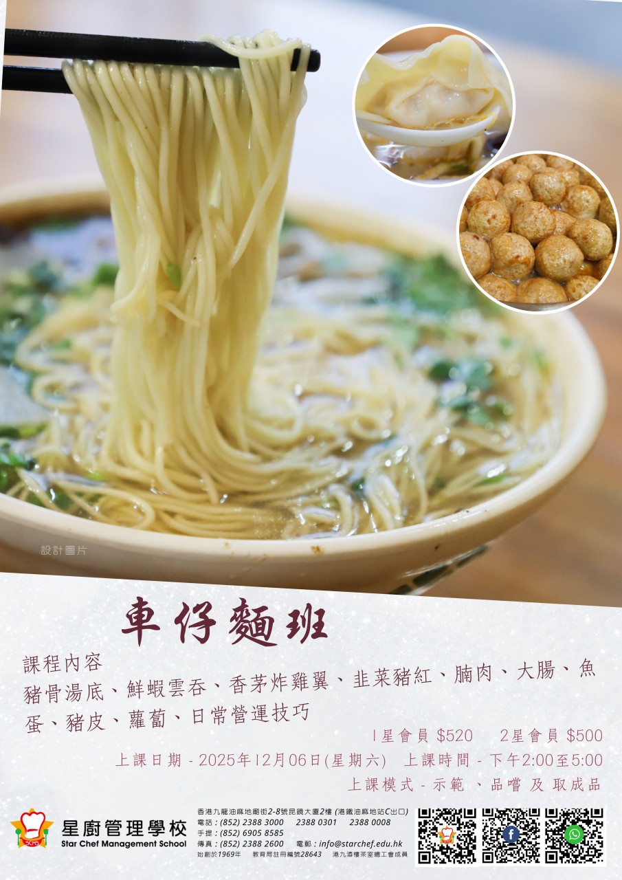 成為星廚管理學校「2星會員」,即可享有以下優惠: